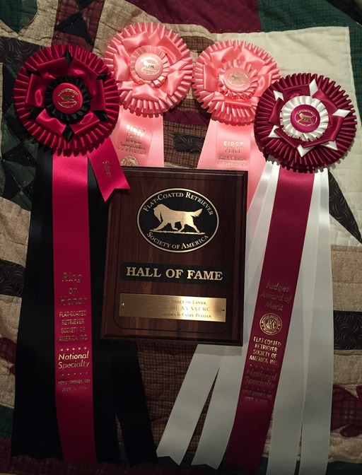 GCH Glenwan's Sidney on Lanier JH SHU NAJ NA BN RN HOF Sidney was bred by the late Wanda Jacobson Middlebrooks. Sidney Got an award of Merit at the 2015 National. Sidney was Select Bitch at the 2014 National Sidney was BOS Veteran Sweeps and Best in Gundog sweeps at the 2013 National.